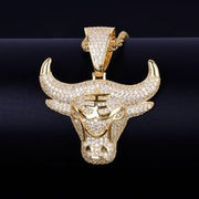 18k Gold .925 Silver Micro Pave AAA Stone Bull Head Tau Pendant Chain Necklace