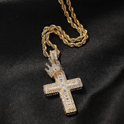 Helloice Iced Out Baguette Cut Royal Crown Cross Pendant
