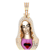 10K White Gold Enamel Mother Mary 4.5CT Diamond Pendant